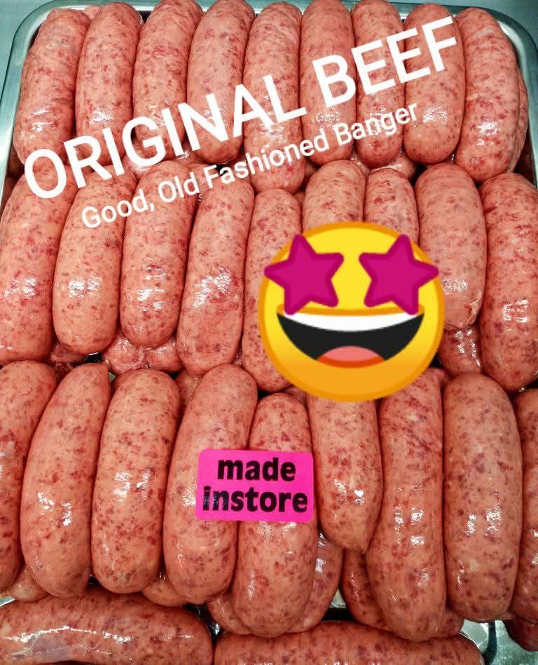 7kg of Beef sausages, big thick and juicy, made with real ingredients