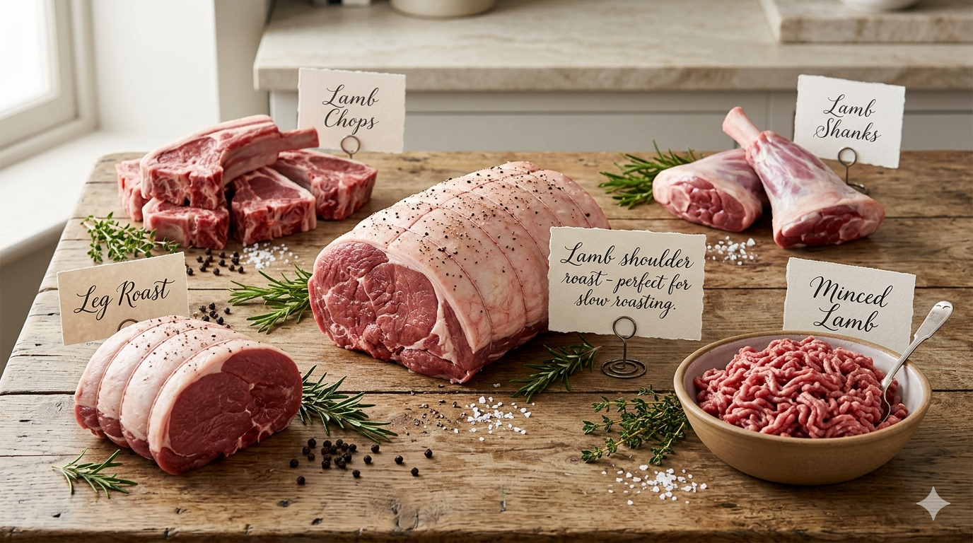 - Lamb shoulder roast – perfect for slow roasting.