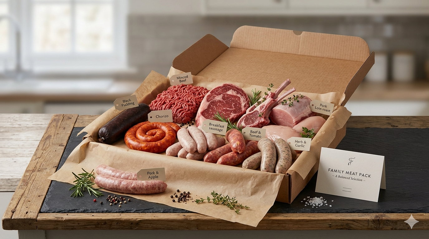 Our family meat packs offer great value and variety. Each pack includes a balanced selection of popular cuts — ideal for weekly meal planning or stocking the freezer. Custom packs can also be made to suit your household’s needs.
